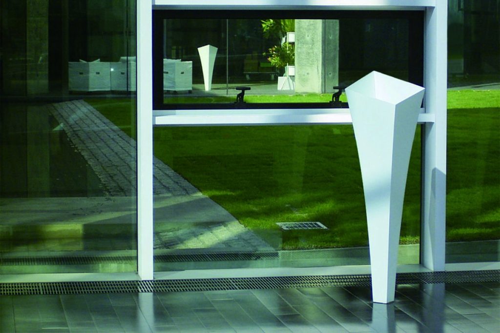 音の送受話器となるアート作品を、中庭を挟んで20mの距離を伝声管で接続している。